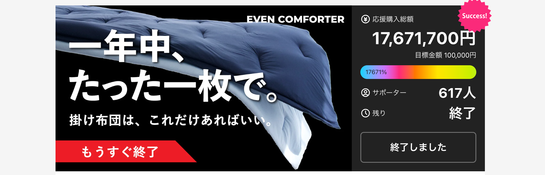 クラウドファンディングで目標金額を大きく上回る1,700万円を達成。