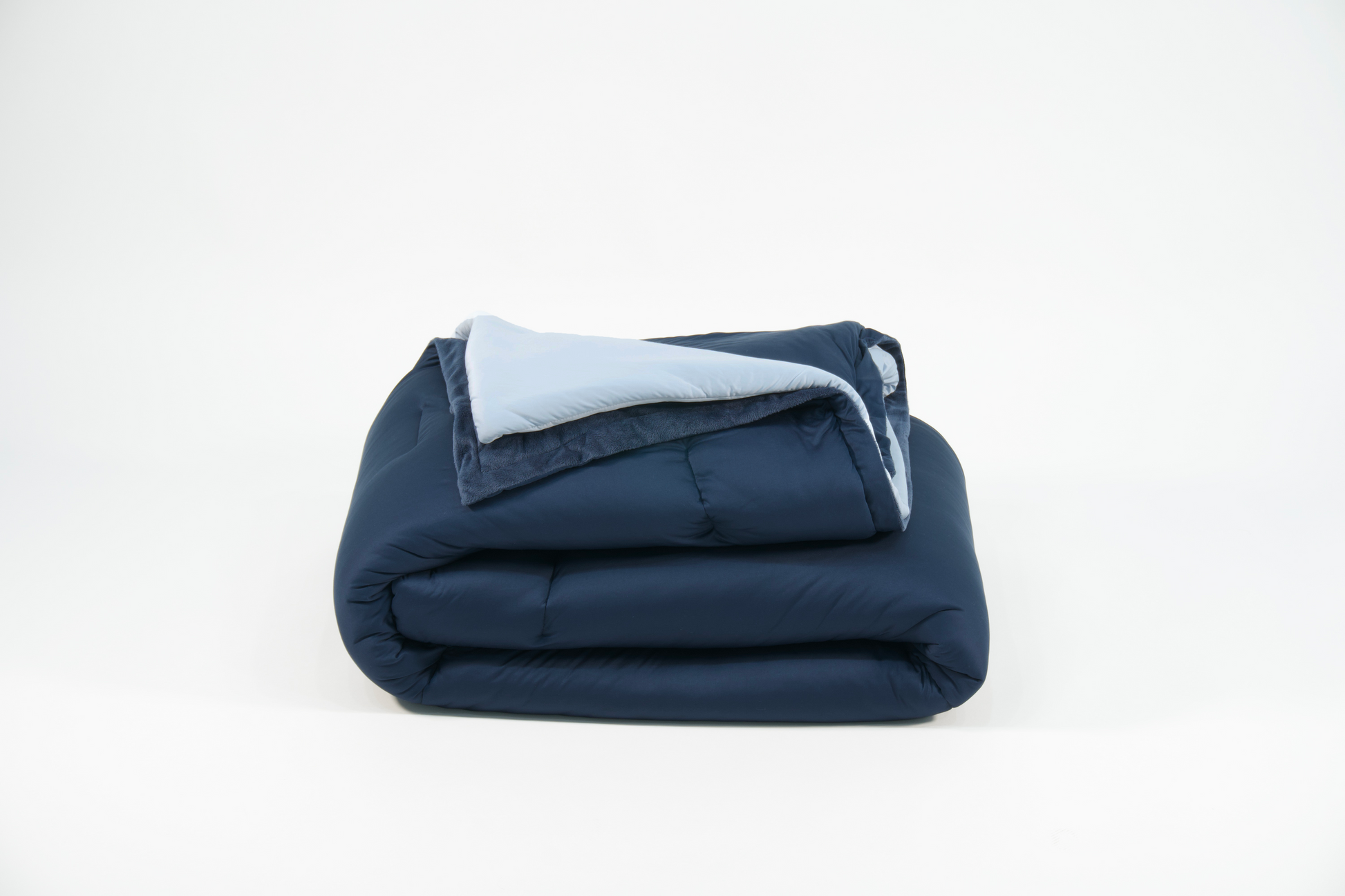 保温性と通気性のバランスが取れたネイビーのレイヤーは、朝晩の温度差が大きい季節に最適。春も秋も快適な寝心地をキープします。