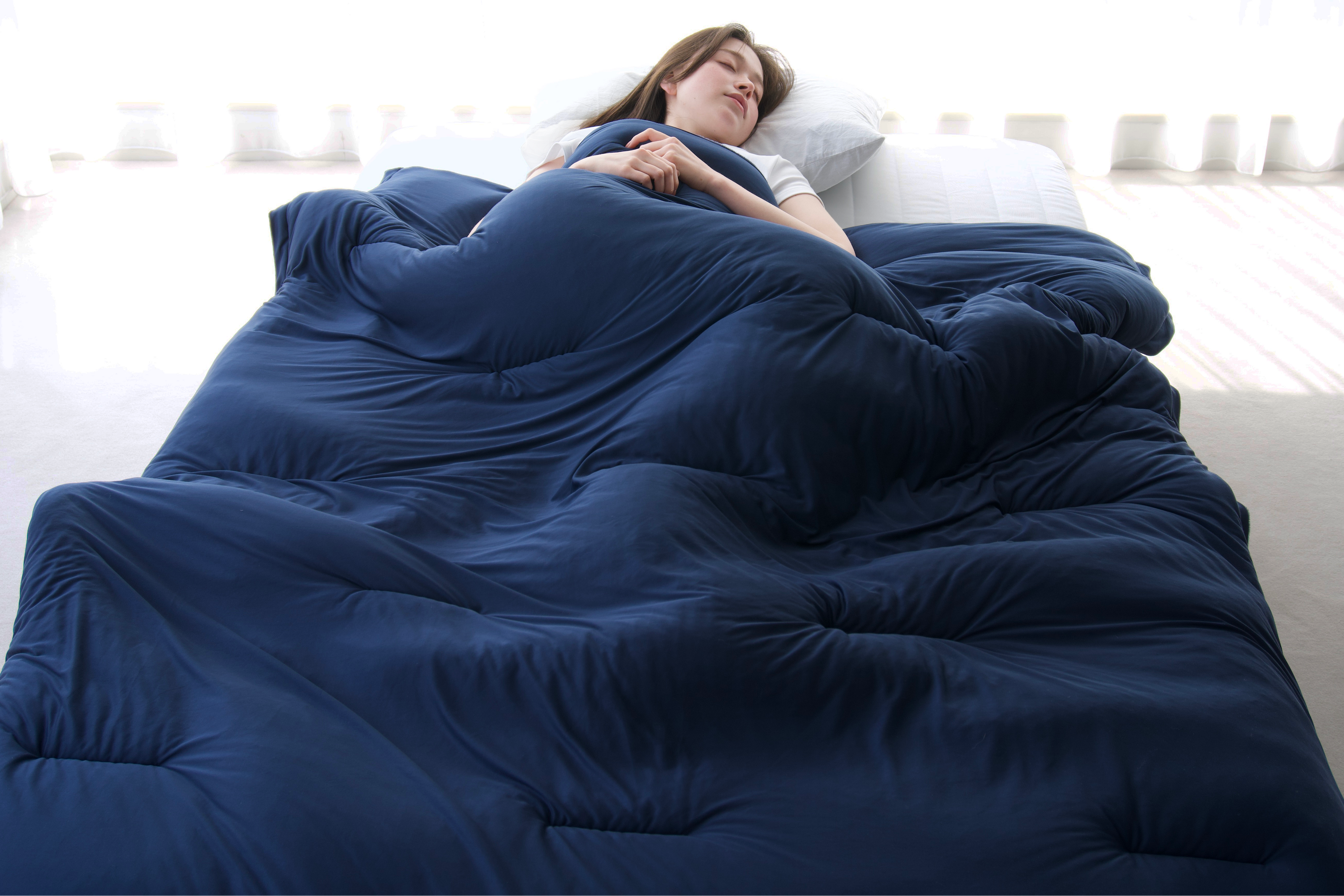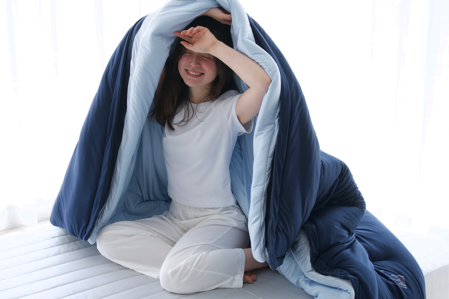 季節や体温に合わせて、ファスナーで2枚のレイヤーを簡単に着脱できる構造。寒い時期は重ねて保温性を高め、暑い時期は軽いレイヤーだけで快適に。1枚のコンフォーターで、春夏秋冬すべての季節に対応します。